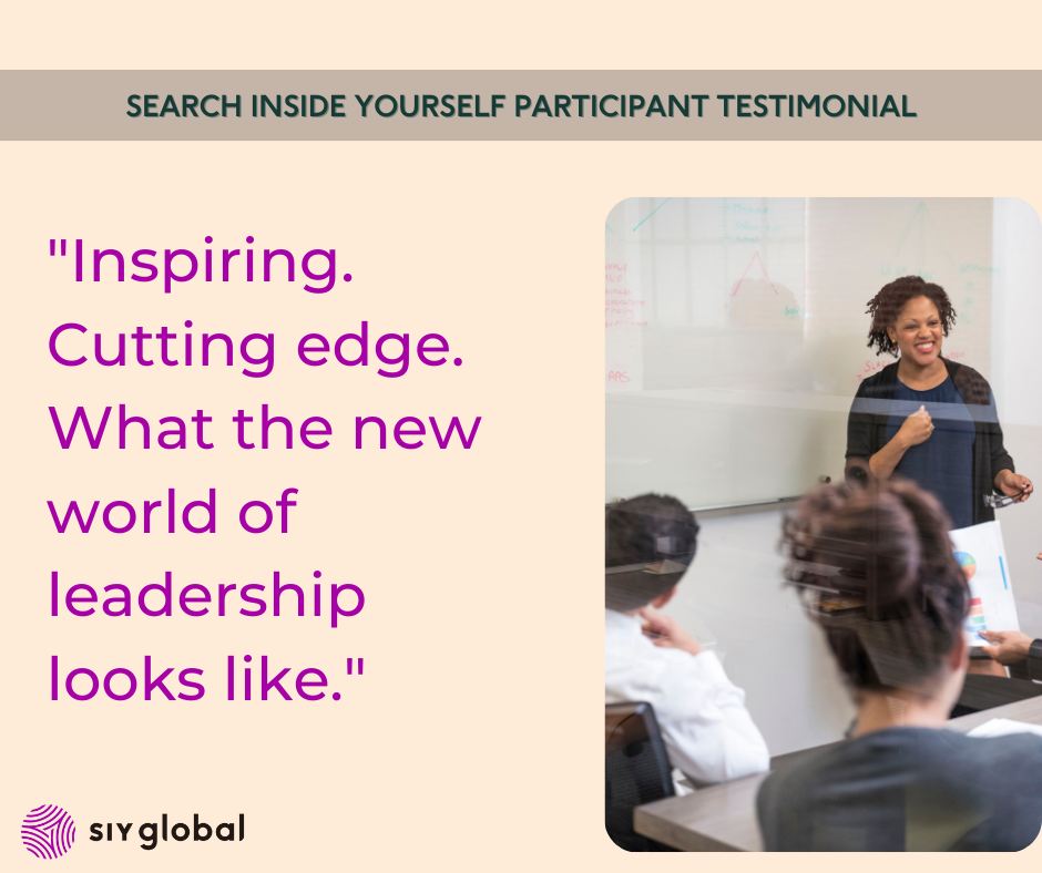 Plain text: "Inspiring. Cutting edge. What the new world of leadership looks like."