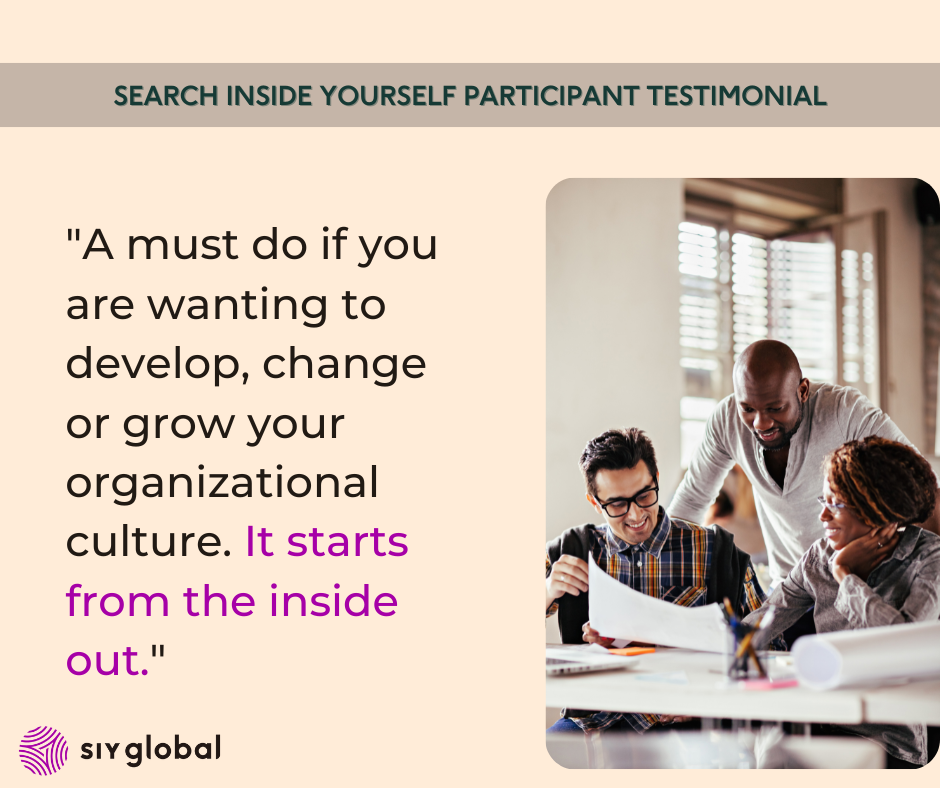 Plain text: "A must do if you are wanting to develop, change or grow your organizational culture. It starts from the inside out."